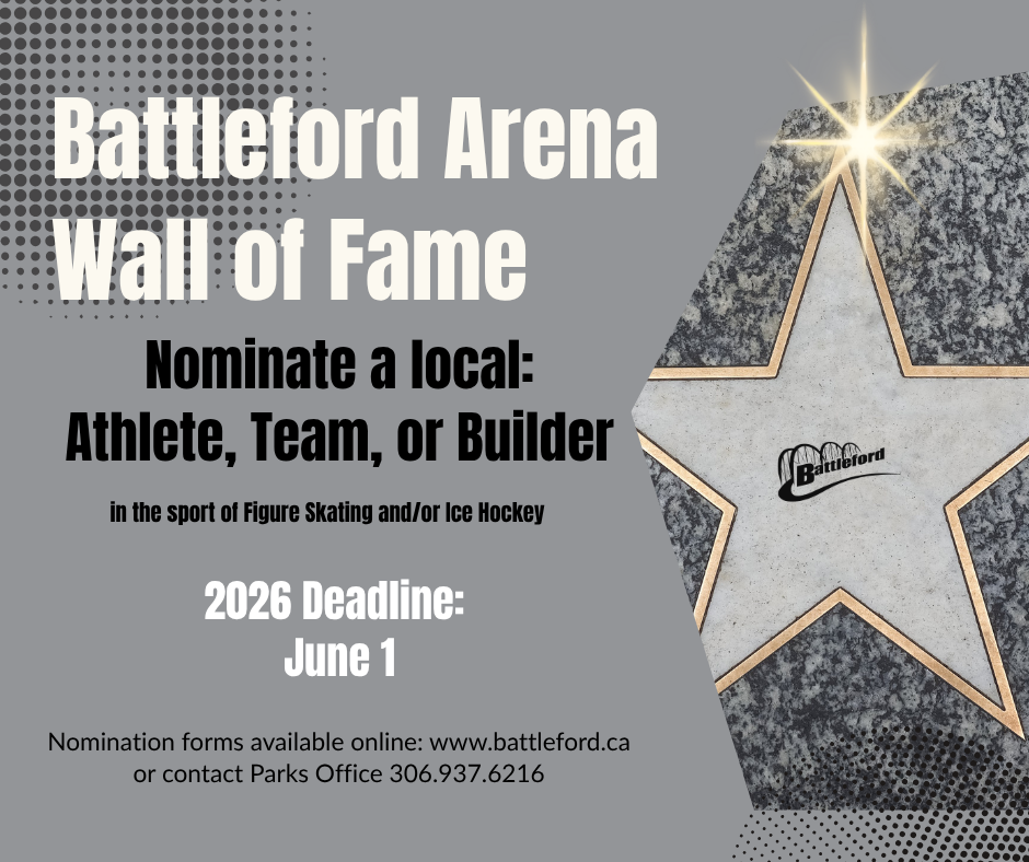 The Town of Battleford is officially accepting nominations for the Battleford Arena Wall of Fame. The initiative celebrates the rich history of ice hockey and figure skating in our community by recognizing those who have brought honour and distinction to the Town through their skill, dedication, and spirit.